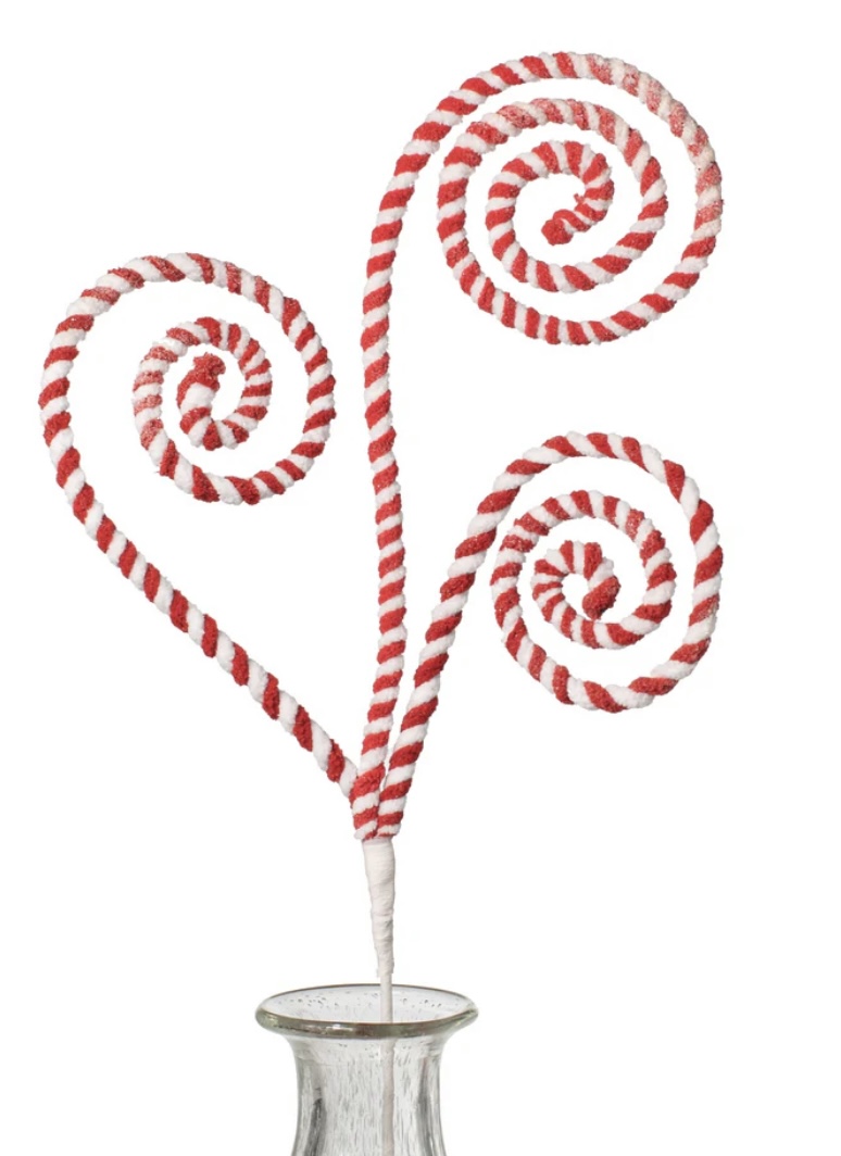 Red and White Peppermint Curl Chenille Pick