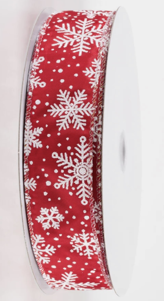 Red Satin Glittered Snowflake Ribbon