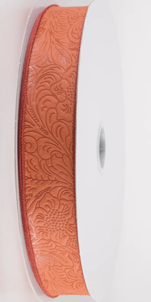 Orange Rust Flower Embossed Ribbon