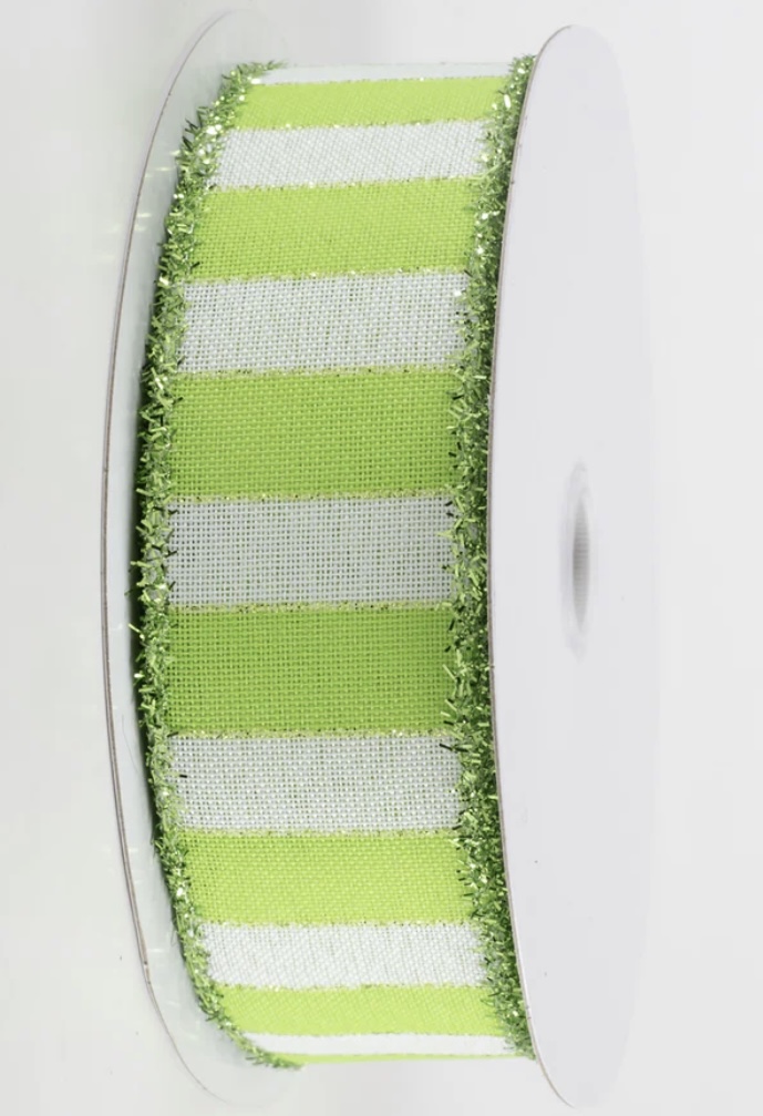 Lime and White Tinsel Edge Ribbon
