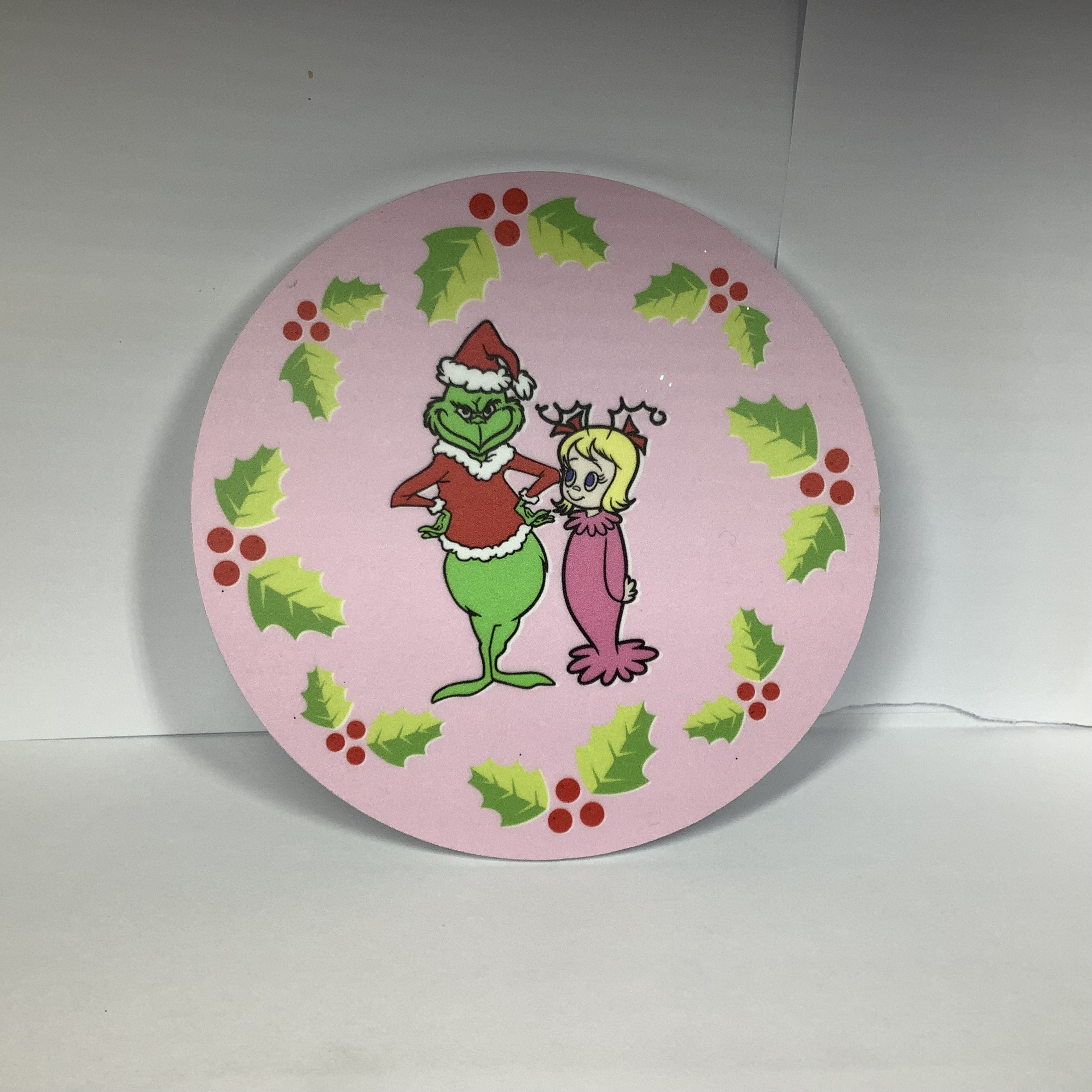 Green monster’s girl. Foamex cookie disc. Waterproof. Lightweight. UV protected. Durable for outdoors and all weathers. Suitable for Christmas season. Useful for wreaths and garlands. Vibrant in colour. 5 inch in size.