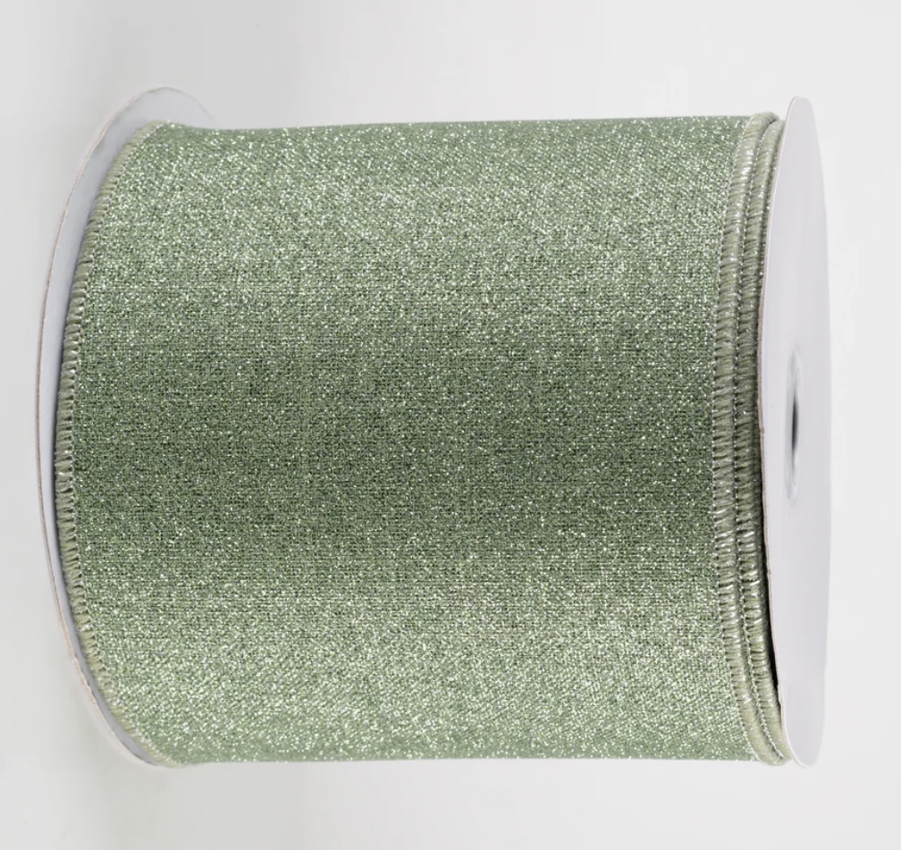 Sage Green Fine Glittered Ribbon