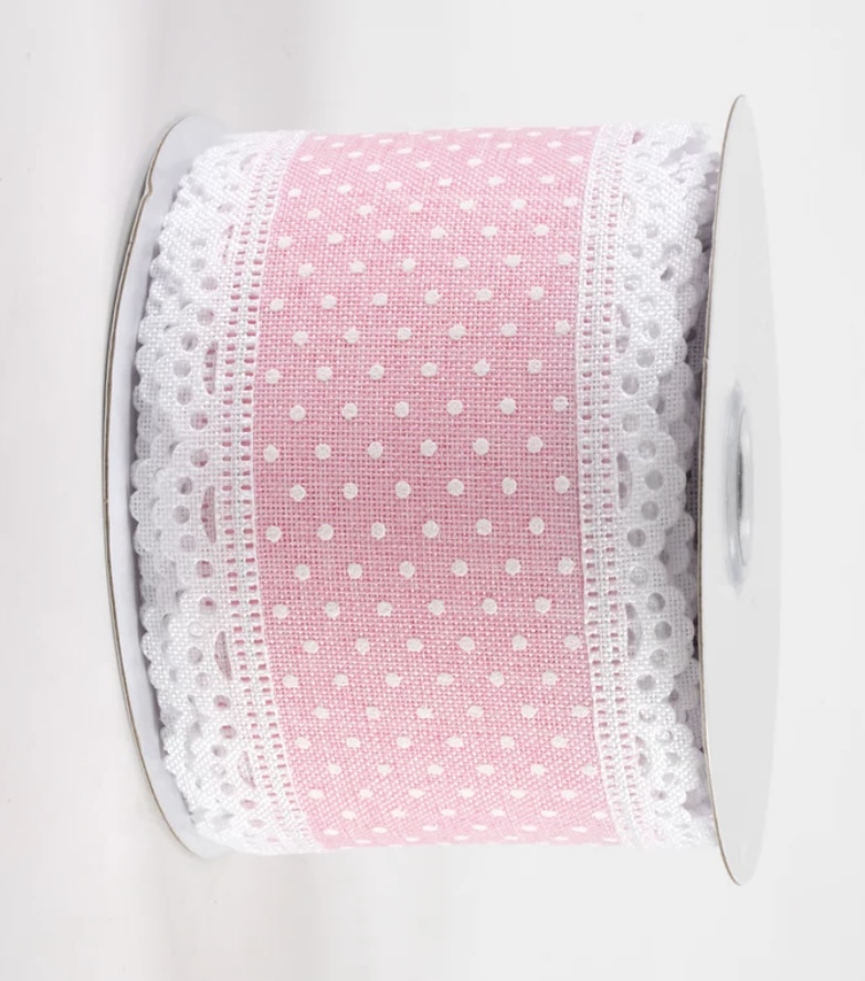 Light Pink and White Swiss Dot Lace Edge Ribbon