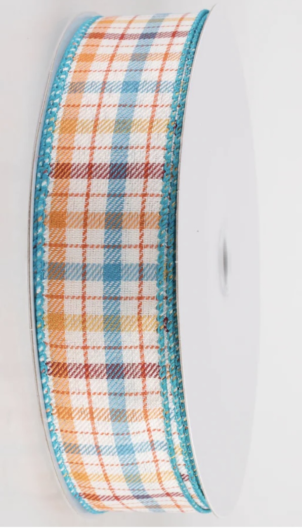 Orange, Burgundy and Teal Plaid Ribbon