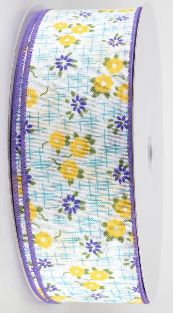 Purple Yellow and Aqua Blue Flower Ribbon