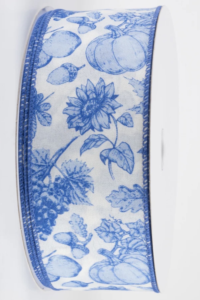 The fall leaves, grapes, apples, pumpkins and berries are clustered close together on the ivory linen-like canvas.
