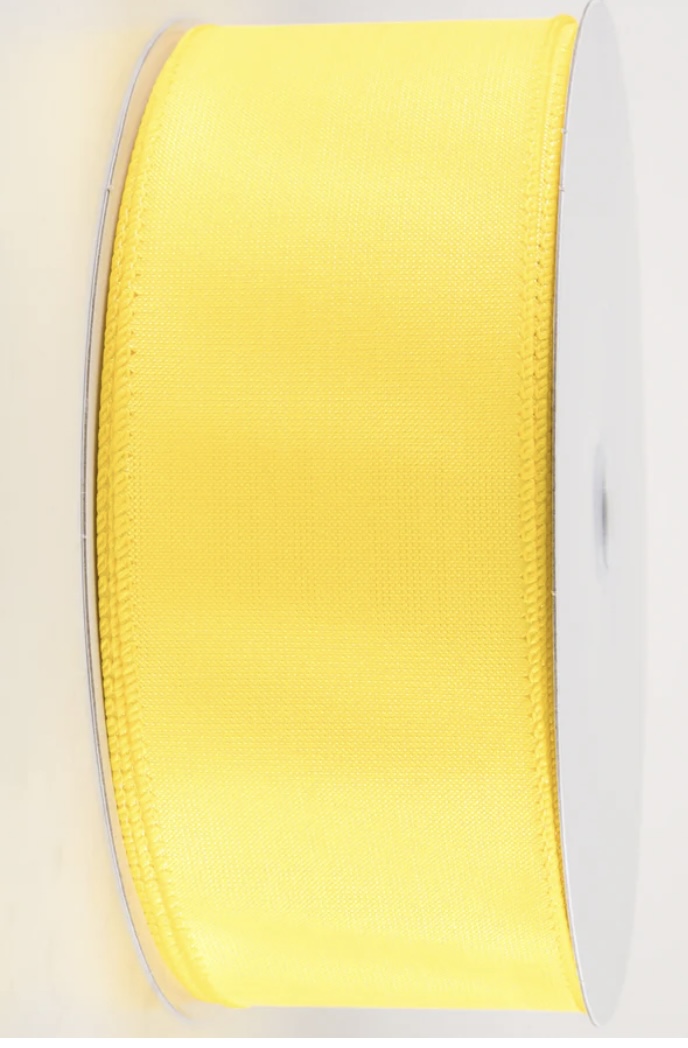 This yellow satin ribbon has tiny, iridescent metallic threads woven into it.