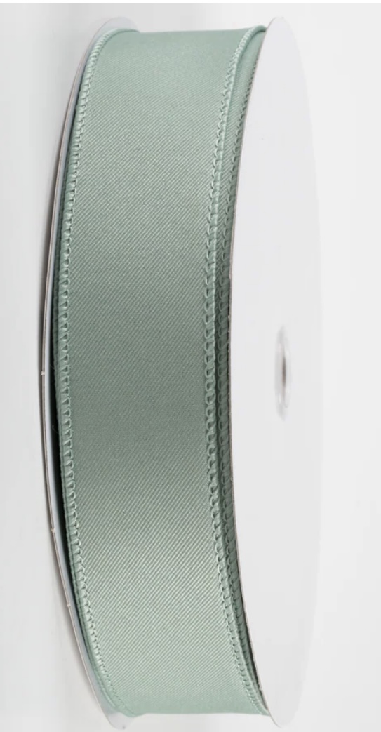 This solid sage green ribbon has subtle sheen and a diagonal grain.