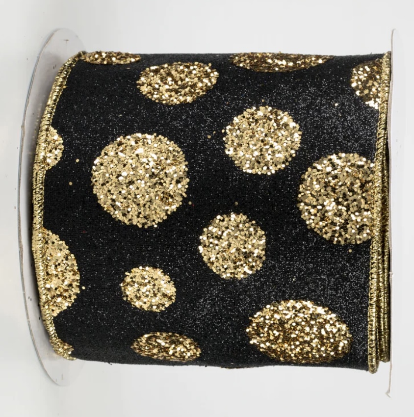 Black and Gold Glitter Dots Ribbon