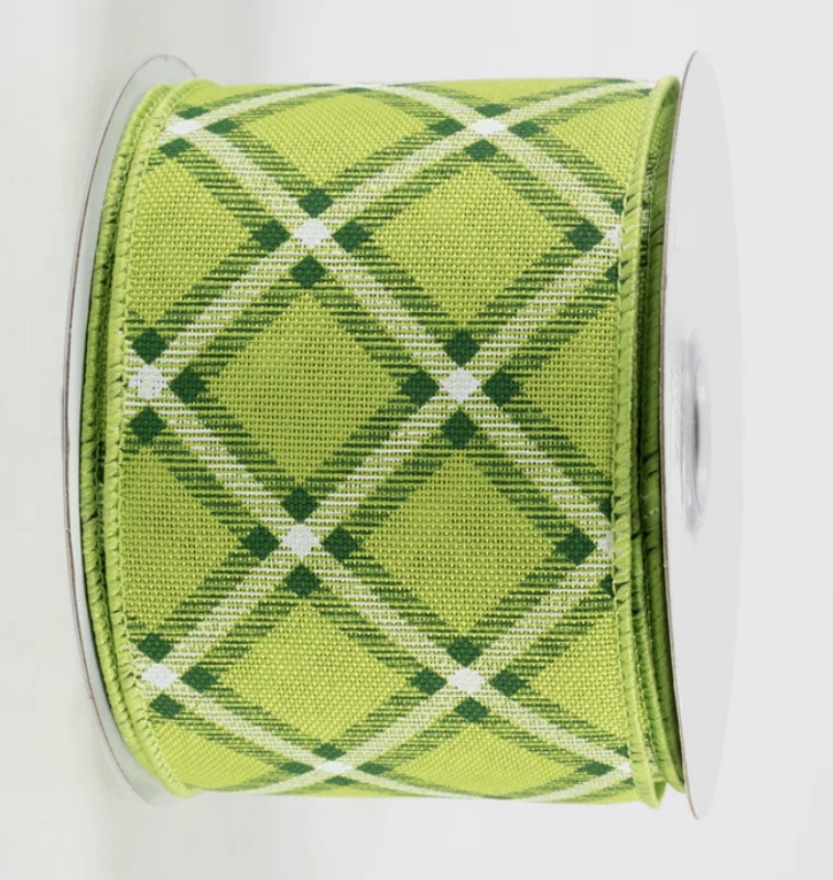 White, dashed lines crisscross each other over this lime green canvas ribbon.