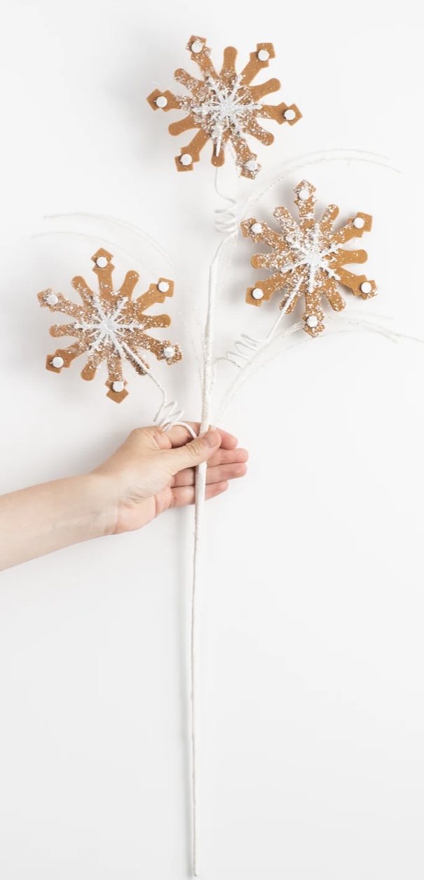 This spray has three gingerbread snowflakes cut from brown felt.