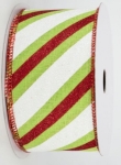 Red and Lime Diagonal Glitter Stripe Ribbon