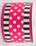 Pink Black and White Striped Polka Dot Ribbon