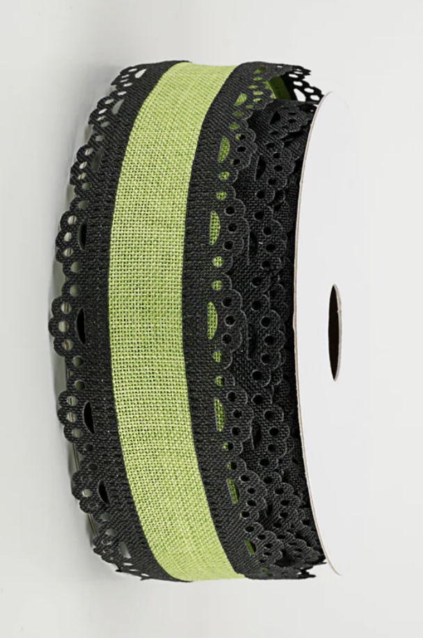 Lime Green and Black Scalloped Edge Ribbon