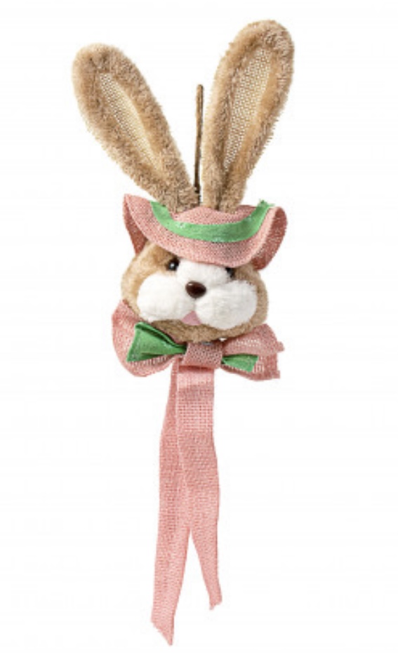 This bunny head has a three dimensional face with a flat back. Textured with