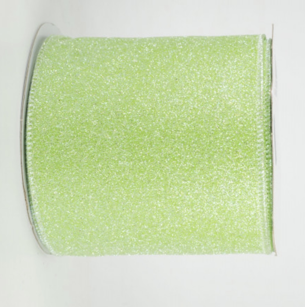 Fully glittered lime green ribbon with an iridescent sparkle.